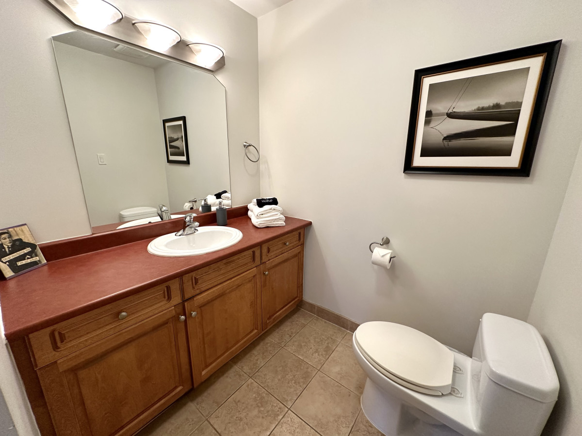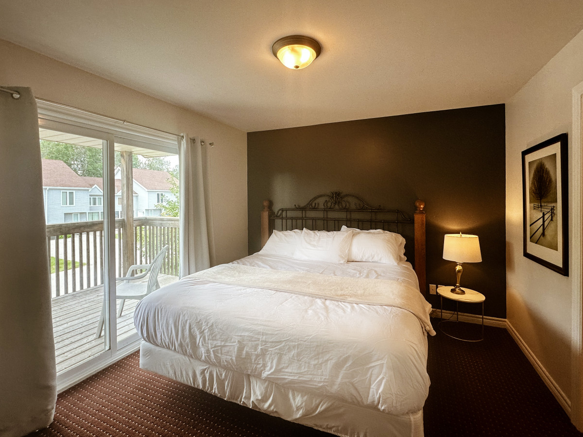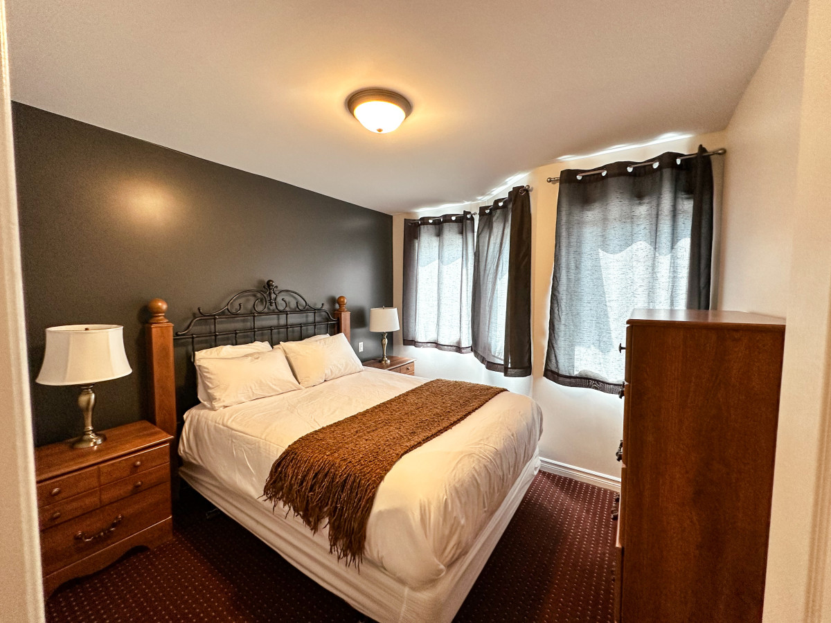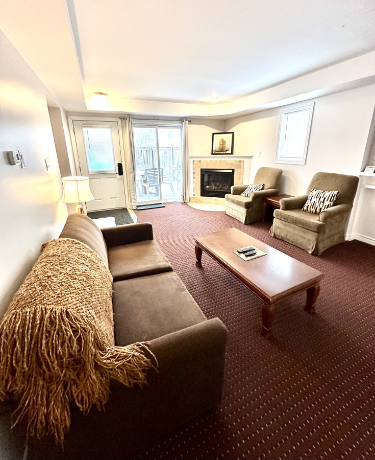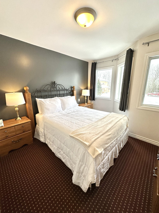 / night2 bedroom 2.5 bath with pull out couch. Perfect for those seeking adventure, a romantic getaway, family fun, or away for business. Less than 10 mins from Blue Mountain look for the mountain lights across from the neighbouring golf course, Scandinave Spa, downtown Collingwood, restaurants, breweries, loads of entertainment, beaches and trails. Short drive to Wasaga Beach. 2 free parking spots plus overflow. Pets welcome. Free wifi & tv apps. Large shared outdoor space, private balcony off of master bdrm. I can be contacted through the app